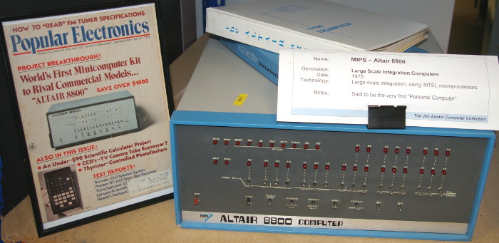 In 1976 the first "home computer" appeared in the USA; it was called the Altair [18] and used an Intel 8086 CPU. It cost around $400 for the kit; the one pictured here is from Jim's collection and can also be seen in the previous photo to give you an idea of scale (just next to my right foot).